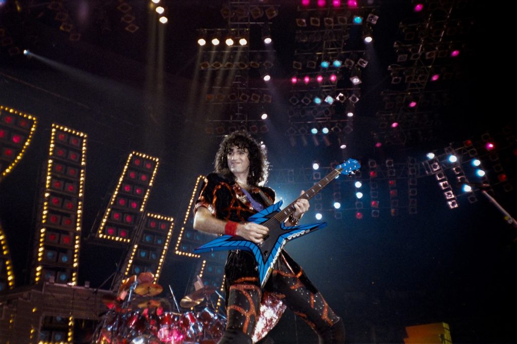 Durante la época de Asylum, yo estaba más unido a Eric Carr. Yo era el nuevo, y Paul y Gene ya llevaban siendo estrellas de rock durante unos diez años. Puedes socializar con ellos, pero no es como si fueras a relacionarte y ser los mejores amigos. Simplemente no es la dinámica de cómo funciona. Mi hombre de confianza con quien podía charlar y pasar el rato era Eric. Estábamos unidos. Tienes que recordar que, en la gira Animalize, me metieron en la limusina con Eric de camino al show y vuelta al hotel. Paul y Gene iban en otra limusina juntos. Gene también era divertido. Siempre recordaré la vez que Gene dijo, “Oye, vamos a dar un paseo” y acabamos de compras en tiendas en el Village en la calle 8. Los comercios eran notoriamente a la moda, y recuerdo que Gene fue realmente guay pero no es un comprador habitual. Dicho eso, salir y conocer gente. Ir de compras juntos fue algo surrealista.