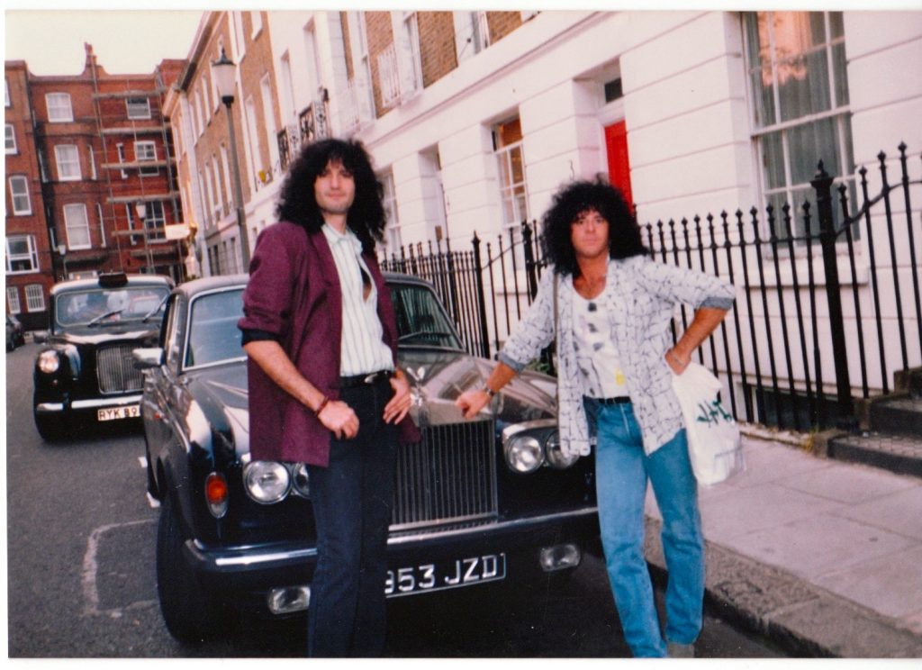 Tengo una foto personal de Eric Carr llevando un jersey gris y pantalones deportivos, trabajando en su batería afuera del estudio musical. En otra foto salimos Eric y yo de pie delante de un Rolls Royce negro despues de ir de compras. Yo llevo un blazer británico rojo muy chulo y él está molón con un par de vaqueros de diseñador. Fue una época fantástica, y yo estaba emocionado de ser parte de la filmación del vídeo.