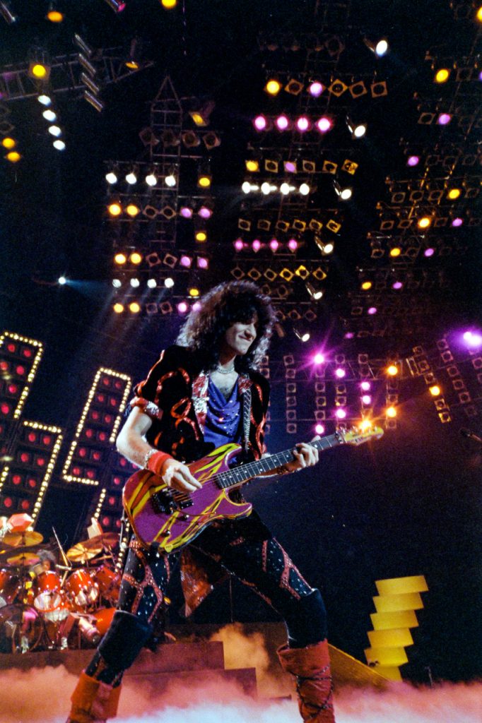 Durante los conciertos, realmente disfrutaba tocar dos de las tres canciones de los vídeos, “Tears Are Falling” y “Uh! All Night”. Por qué nunca tocamos “Who Wants To Be Lonely”, es algo que todavía me pregunto. Yo estaba en una magnífica forma física para tocar la solista. Con la adrenalina extra de la emoción de la multitud, y el tempo rápido de nuestros shows en directo, no siempre me gustó hacer las canciones realmente rápidas. El tocar la solista a todo trapo era un reto. La reacción de la multitud sería tan fuerte cuando tocábamos los éxitos. Se volvieron mis favoritos del repertorio. Black ‘N Blue, W.A.S.P. y King Kobra fueron los principales teloneros en la gira Asylum. Me gustaban Black ‘N Blue, estaban hechos justo a la medida para la época del big hair de la MTV. Todos los teloneros fueron geniales, pero tengo que admitir que W.A.S.P. me llamaron la atención por su líder, Blackie Lawless. Tenía cierta onda a Gene con una dirección hacia el horror. Sangre, tripas y motosierras, Blackie lo hizo bien. Por eso W.A.S.P. todavía son famosos hoy en día. Carmine Appice era el batería de King Kobra, y siempre he sido un gran fan suyo.